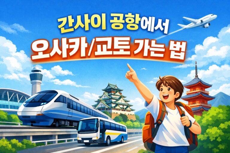 간사이 공항에서 목적지까지 가는 법을 소개합니다. 처음 가도 실수 없이 도착할 수 있도록 체크해요. 간사이 국제공항(KIX) 도착 후 가장 많이 헤매는 포인트는 딱 2가지예요. 이 글은 간사이 공항에서 오사카·교토로 가는 대표 3가지 루트를 시간·요금과 함께 정리하고, 공항에서 바로 적용할 수…